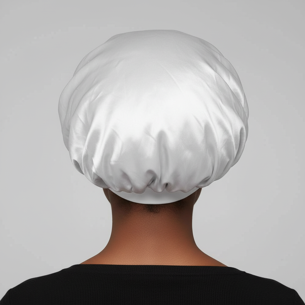 Le bonnet en satin est utilisé pour recouvrir les cheveux pendant le sommeil. Sa surface lisse limite la friction entre les cheveux et les surfaces de couchage, ce qui peut aider à prévenir les frottements. Il contribue également à réduire l'exposition des cheveux à l'air ambiant, participant ainsi au maintien de leur hydratation.