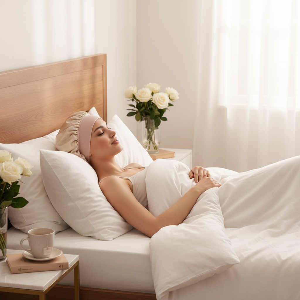 Protégez vos cheveux avec élégance et confort grâce à notre bonnet en satin blanc.