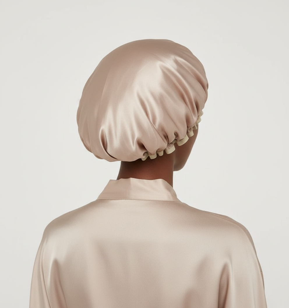 Bonnet En Satin Beige Plissé Douche pour la protection des cheveux