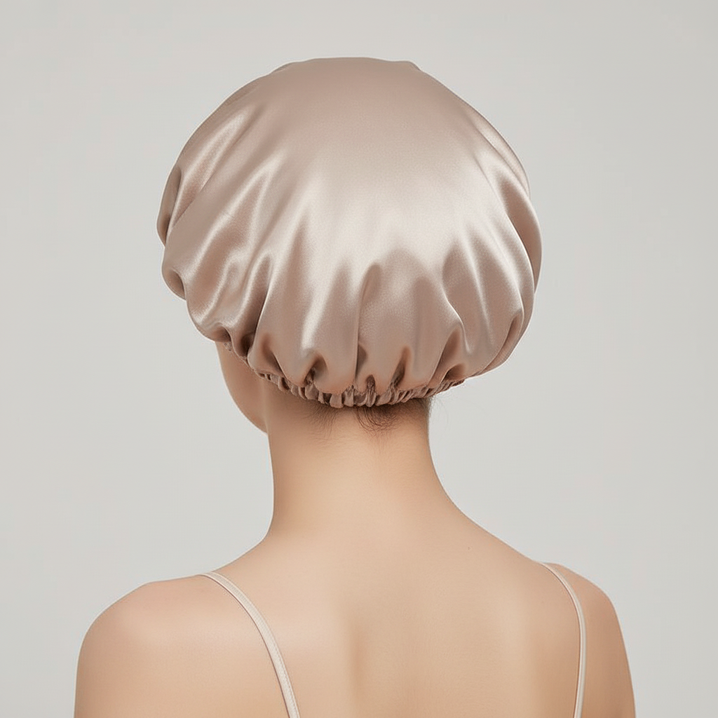 Ce bonnet en satin est conçu pour couvrir les cheveux pendant le sommeil. Sa surface lisse vise à réduire les frottements capillaires nocturnes.
