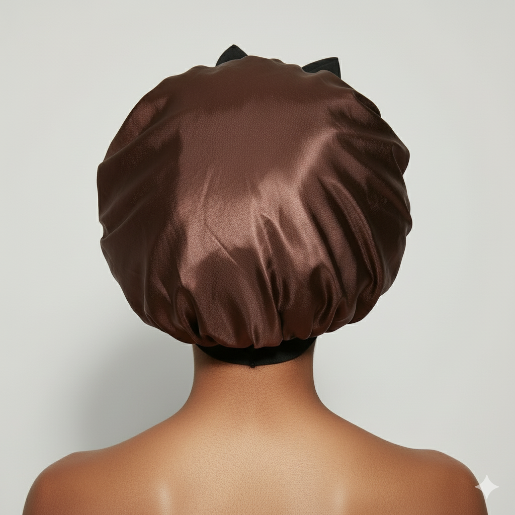Ce bonnet est destiné à être porté pendant la nuit pour envelopper les cheveux. La texture lisse du satin peut contribuer à réduire les frottements des cheveux contre les surfaces. Le satin n'absorbe pas l'humidité des cheveux de la même manière que d'autres tissus.