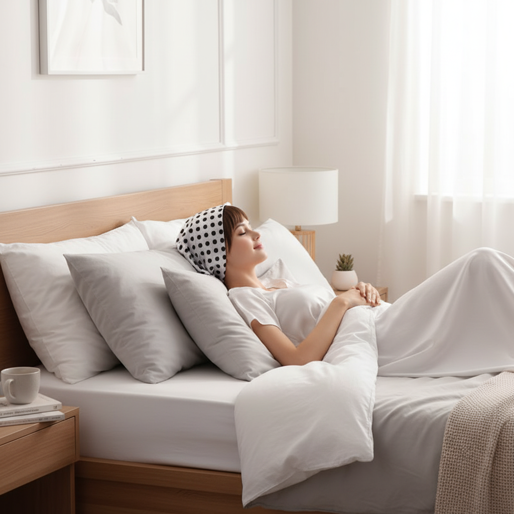 Bonnet En Satin Blanc À Pois Pour Cheveux