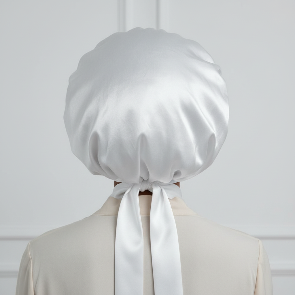 Bonnet En Satin Blanc Ajustable Pour Femme