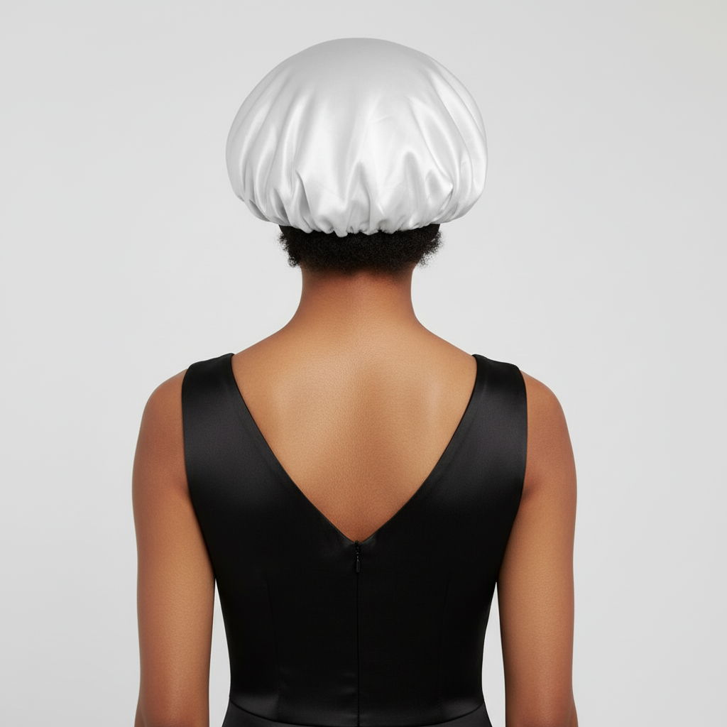Le bonnet se place sur la tête pour envelopper les cheveux avant le coucher. Sa surface lisse réduit le contact direct des cheveux avec les surfaces de la literie. Ceci contribue à maintenir les coiffures et à limiter les frictions capillaires durant la nuit.