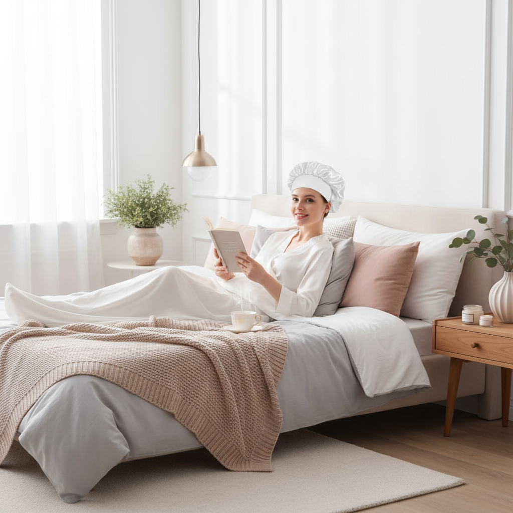 Bonnet En Satin Blanc Uni Pour Femme : Protection Capillaire Nocturne