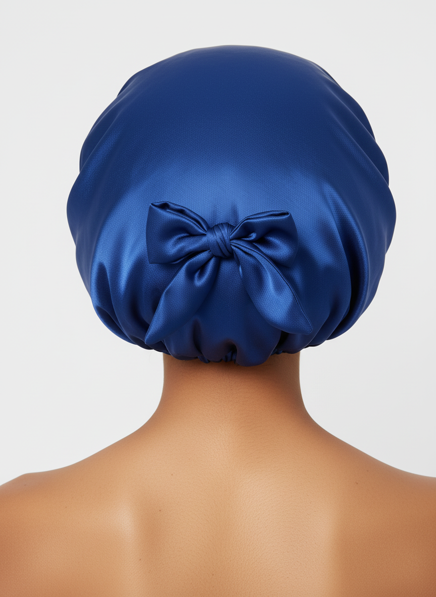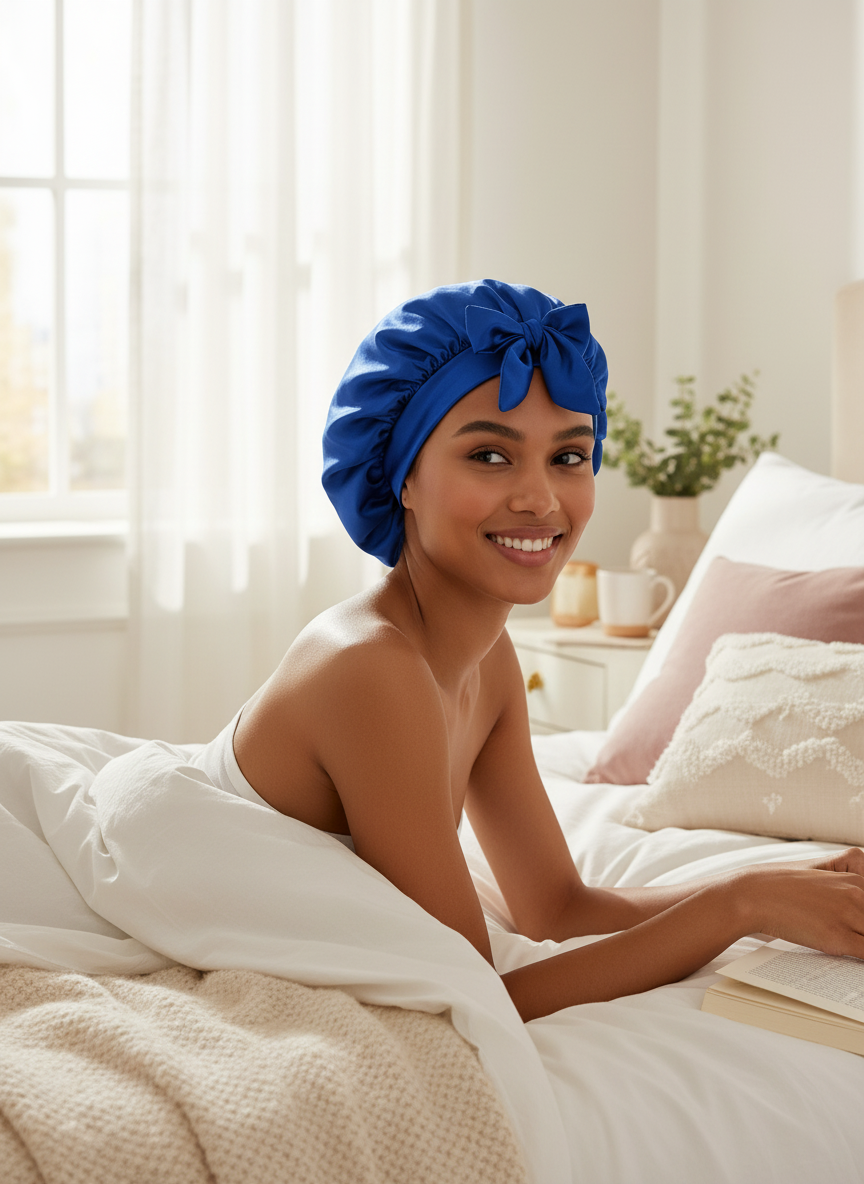 Bonnet En Satin Bleu Avec Nœud Femme : Protection Capillaire Nocturne