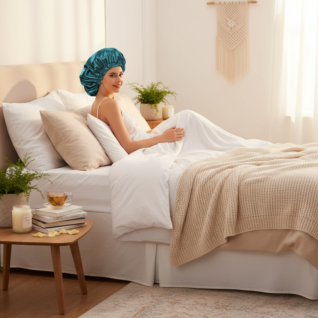 Le bonnet en satin est utilisé pour contenir la chevelure, notamment durant le sommeil ou lors d'activités à domicile. Sa surface lisse est destinée à réduire le frottement des cheveux contre des surfaces externes, ce qui permet de limiter les désagréments comme les nœuds. Il contribue également à maintenir la coiffure en place.