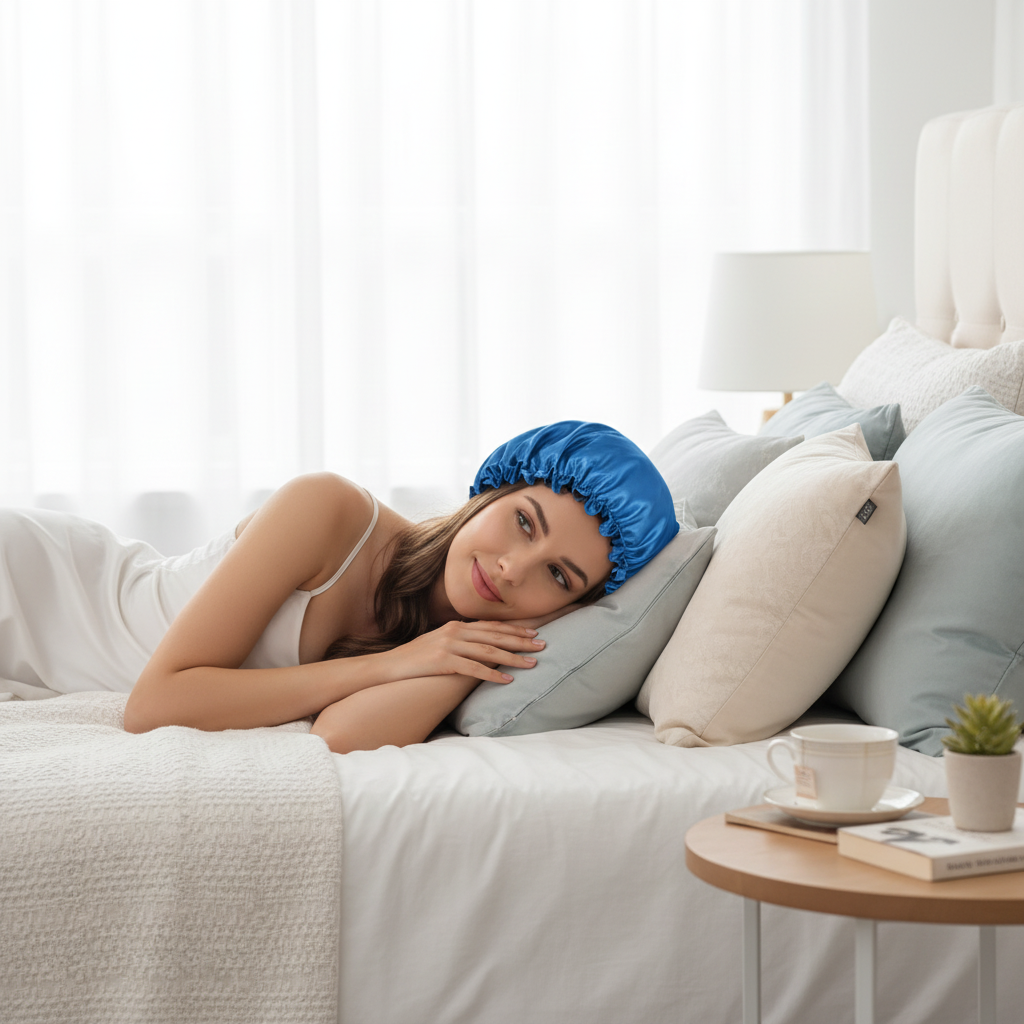 Protégez vos cheveux pendant votre sommeil avec ce bonnet en satin doux et élégant.