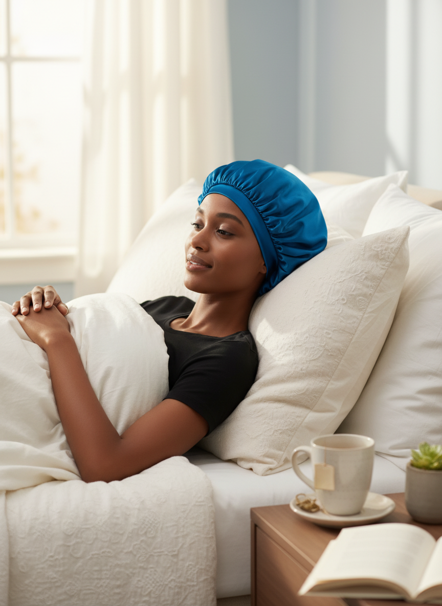 Protégez vos cheveux pendant votre sommeil avec ce bonnet en satin doux et élégant.