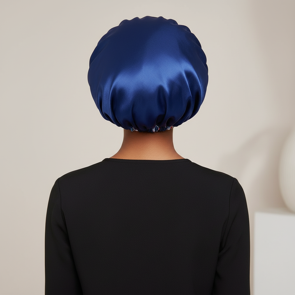 Bonnet En Satin Bleu Marine Imprimé Pour Nuit