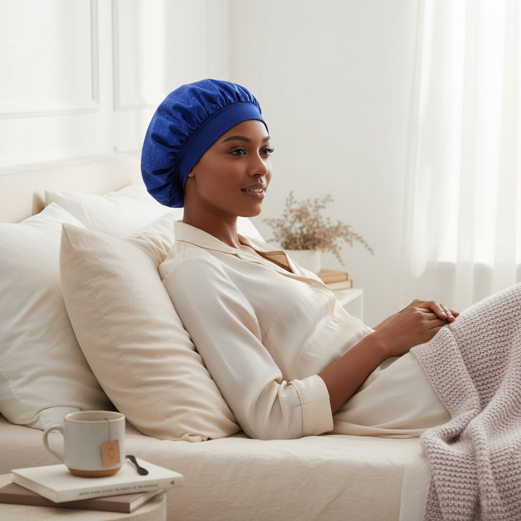 Protégez vos cheveux toute la nuit avec notre bonnet en satin doux et élégant, conçu pour un soin capillaire optimal.