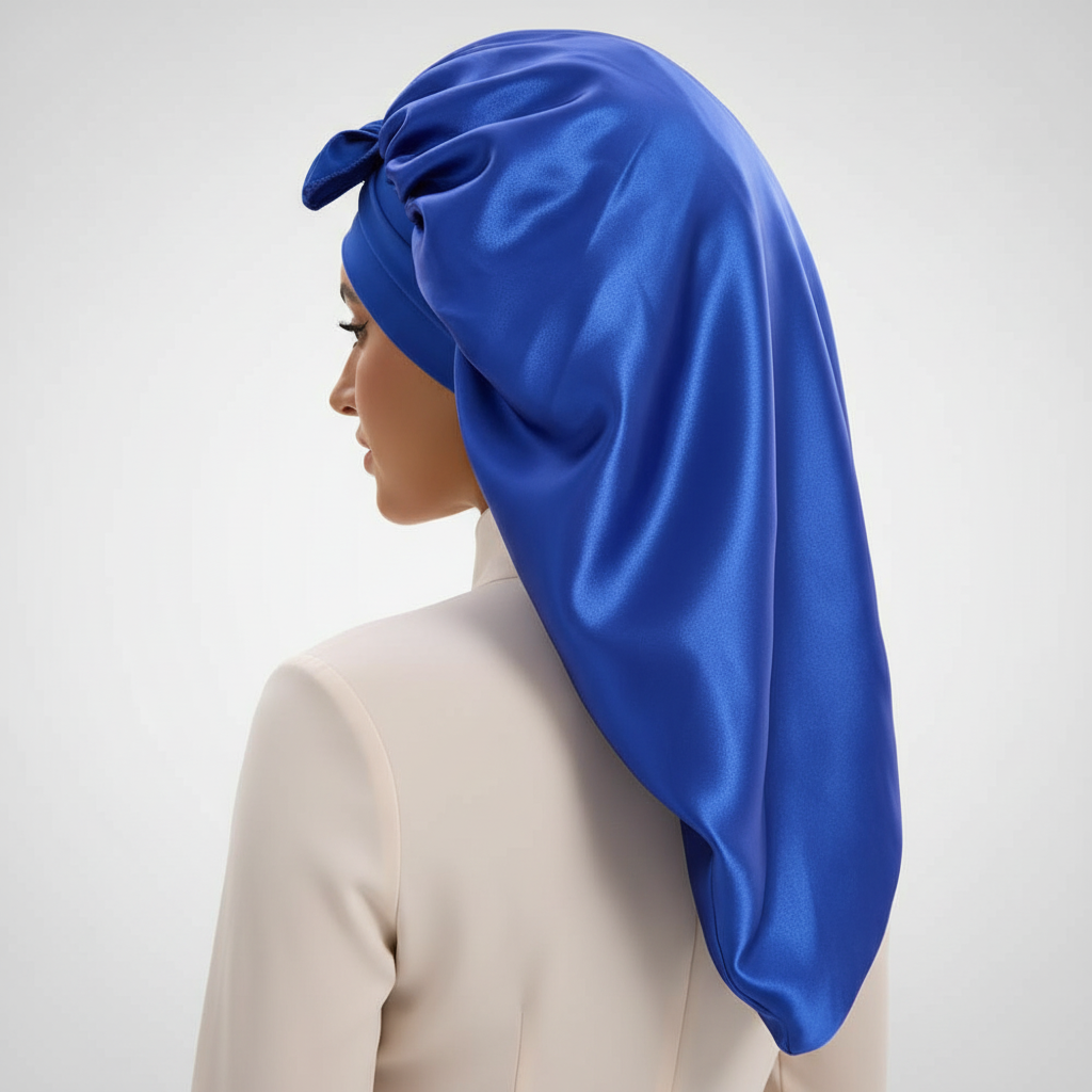 Bonnet En Satin Bleu Pour Cheveux Longs De Nuit