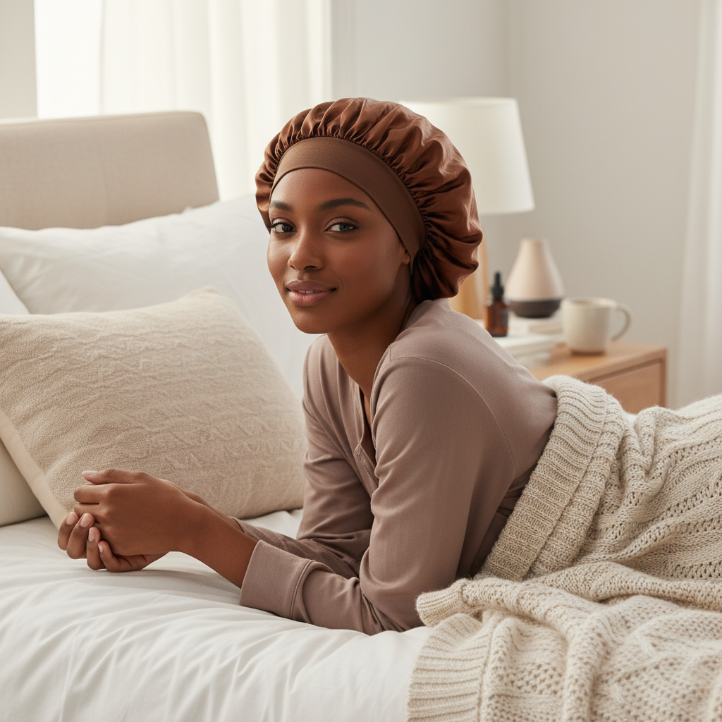 Le bonnet en satin est destiné à couvrir la chevelure pendant la nuit ou les périodes de repos. Sa surface lisse contribue à réduire les frottements entre les cheveux et les surfaces de contact, comme les oreillers.
