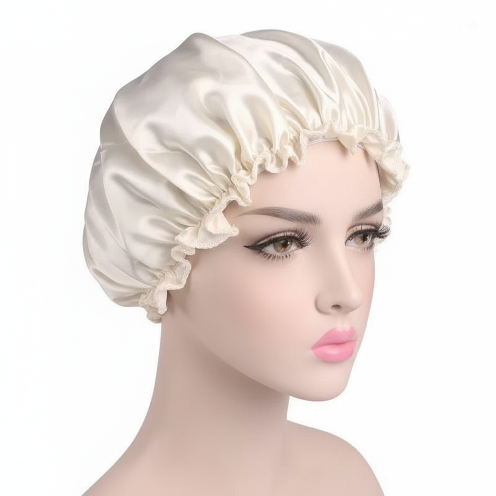 Bonnet En Satin Crème Volanté De Nuit : Avec Bordure Volantée