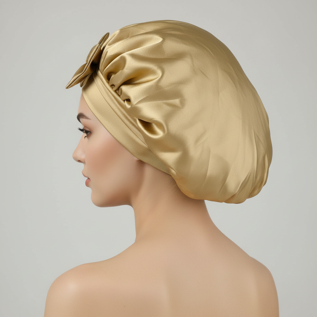 Bonnet En Satin Doré Avec Nœud Élégant Femme