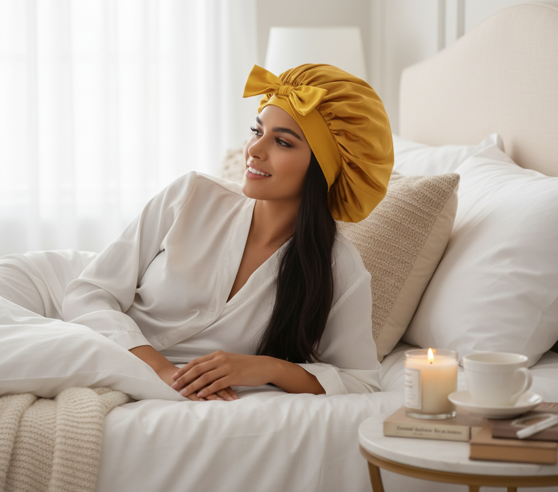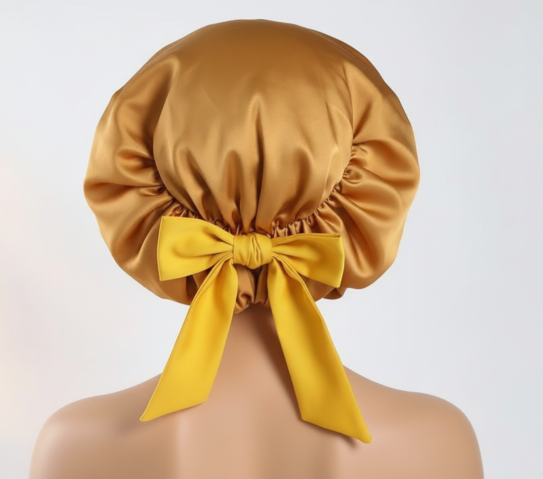 Bonnet En Satin Doré Avec Nœud Réglable Nuit