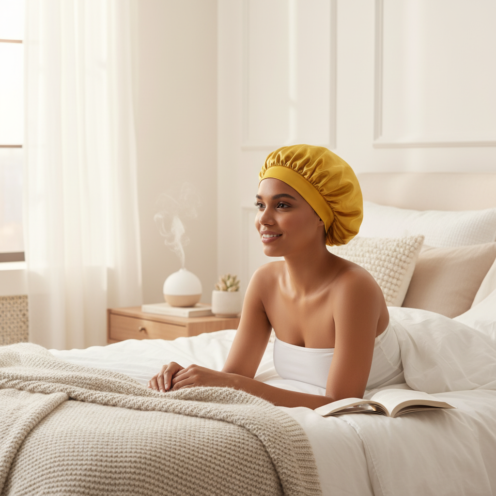Le bonnet en satin est utilisé pour couvrir les cheveux, notamment pendant le sommeil. Sa surface lisse permet de limiter les frottements des cheveux contre l'oreiller ou d'autres surfaces. Il sert également à maintenir les coiffures en place.
