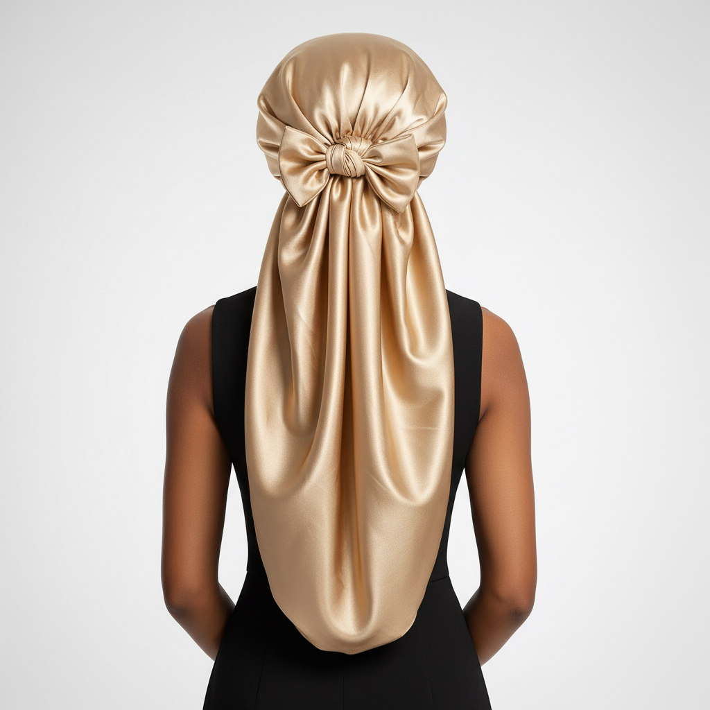Le bonnet en satin doré est un accessoire pour cheveux conçu pour être porté pendant le sommeil. Il est destiné à couvrir les cheveux longs et volumineux de divers types, tels que bouclés, crépus, frisés ou lisses.