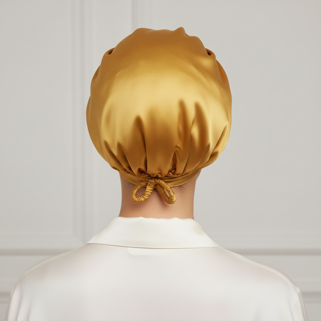 Bonnet En Satin Doré Noué Femme : Noué, Double Couche, Ajustable