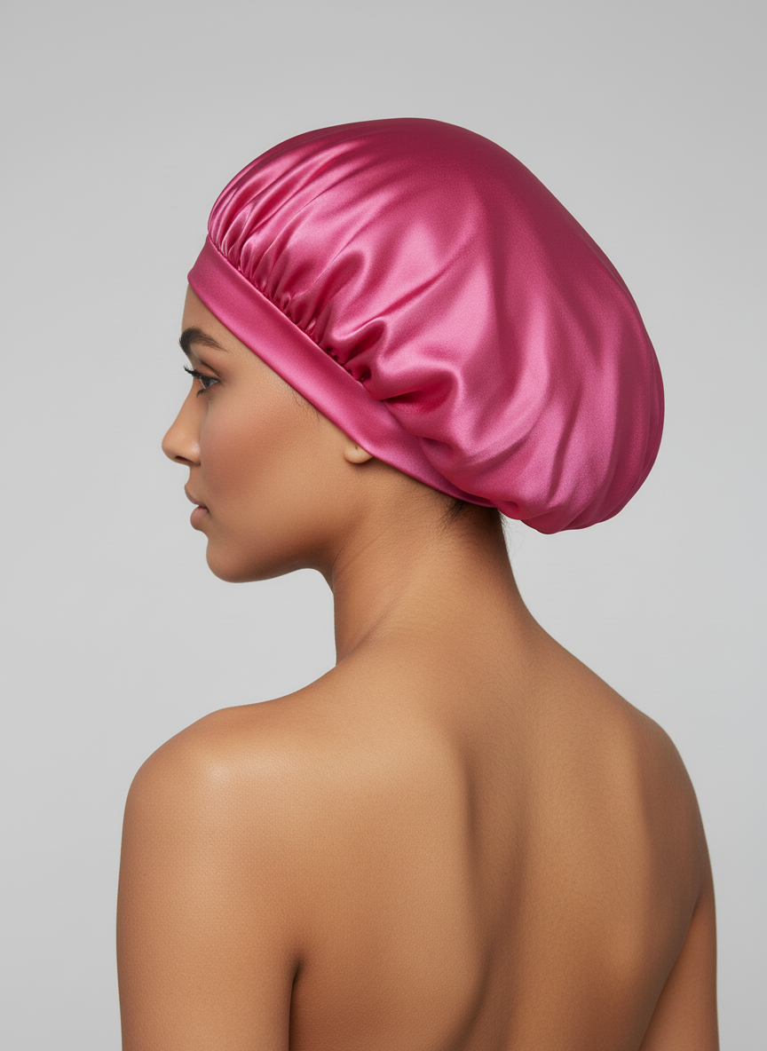 Le bonnet se positionne sur la tête pour maintenir les cheveux couverts. Il sert à interposer une couche de satin entre les cheveux et d'autres textiles, comme les taies d'oreiller, dans le but de réduire les contacts directs et les frottements.