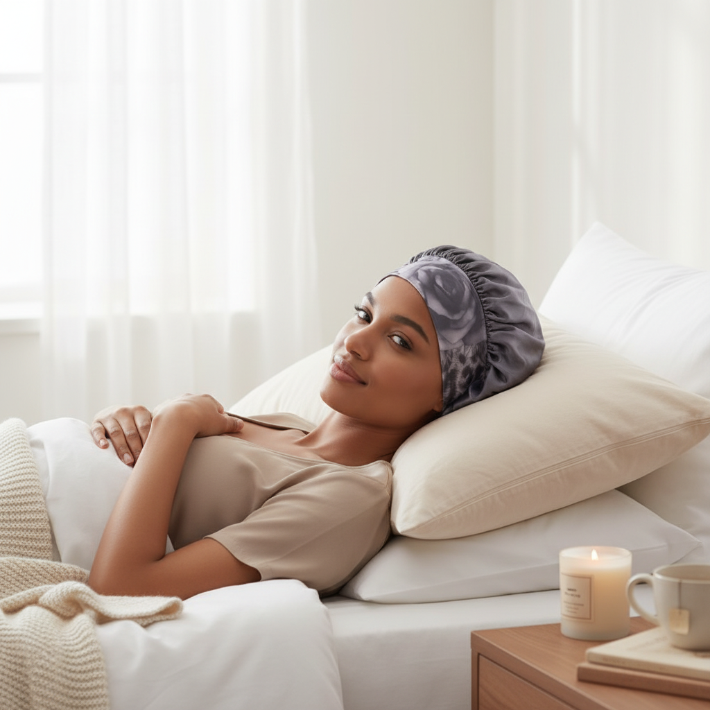 Découvrez la qualité et le réalisme de notre Bonnet En Satin Gris Imprimé De Nuit. Parfaite pour s’entraîner à la coiffure, développer sa créativité et réaliser des styles variés comme en salon professionnel.