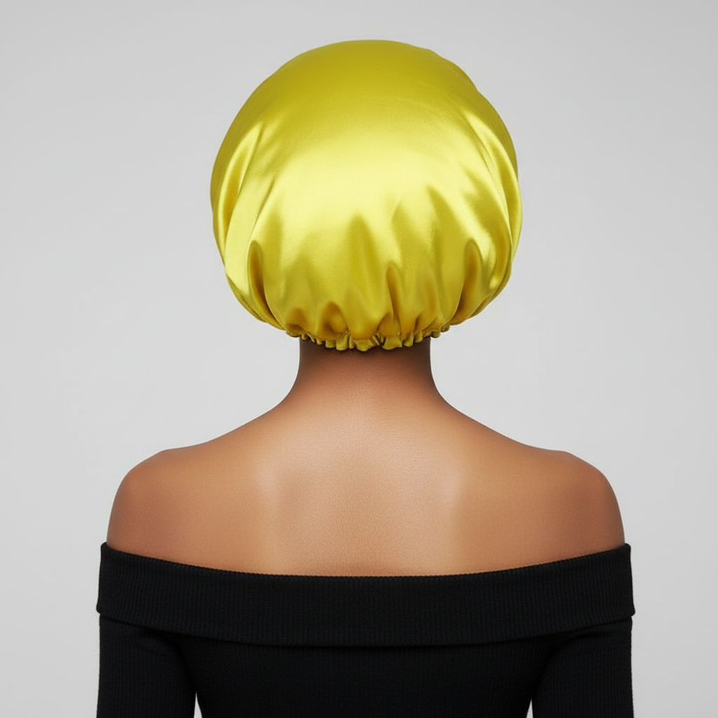 Bonnet En Satin Jaune Élastique Femme : Protection Capillaire Nocturne