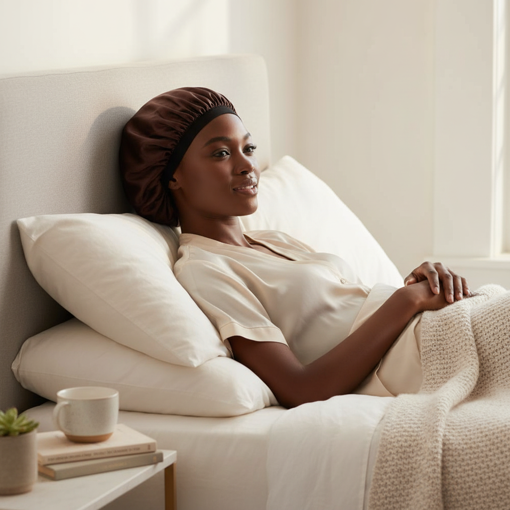 Protégez vos cheveux pendant votre sommeil avec notre bonnet en satin doux et élégant.