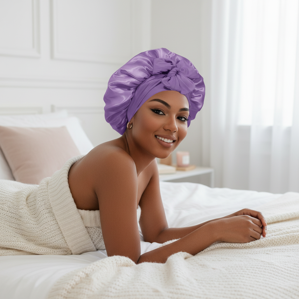 Bonnet En Satin Lavande À Nouer Pour Cheveux