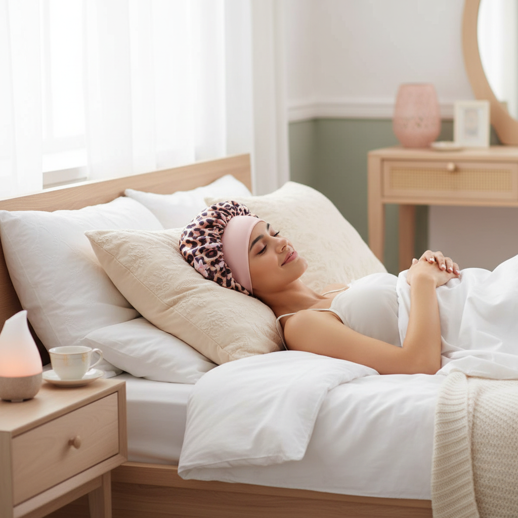 Le bonnet en satin réduit la friction des cheveux contre l'oreiller pendant le sommeil. Cette action contribue à minimiser l'apparition de frisottis et de nœuds. Sa matière non-absorbante aide également à maintenir l'hydratation capillaire et l'efficacité des produits de soin appliqués sur les cheveux.