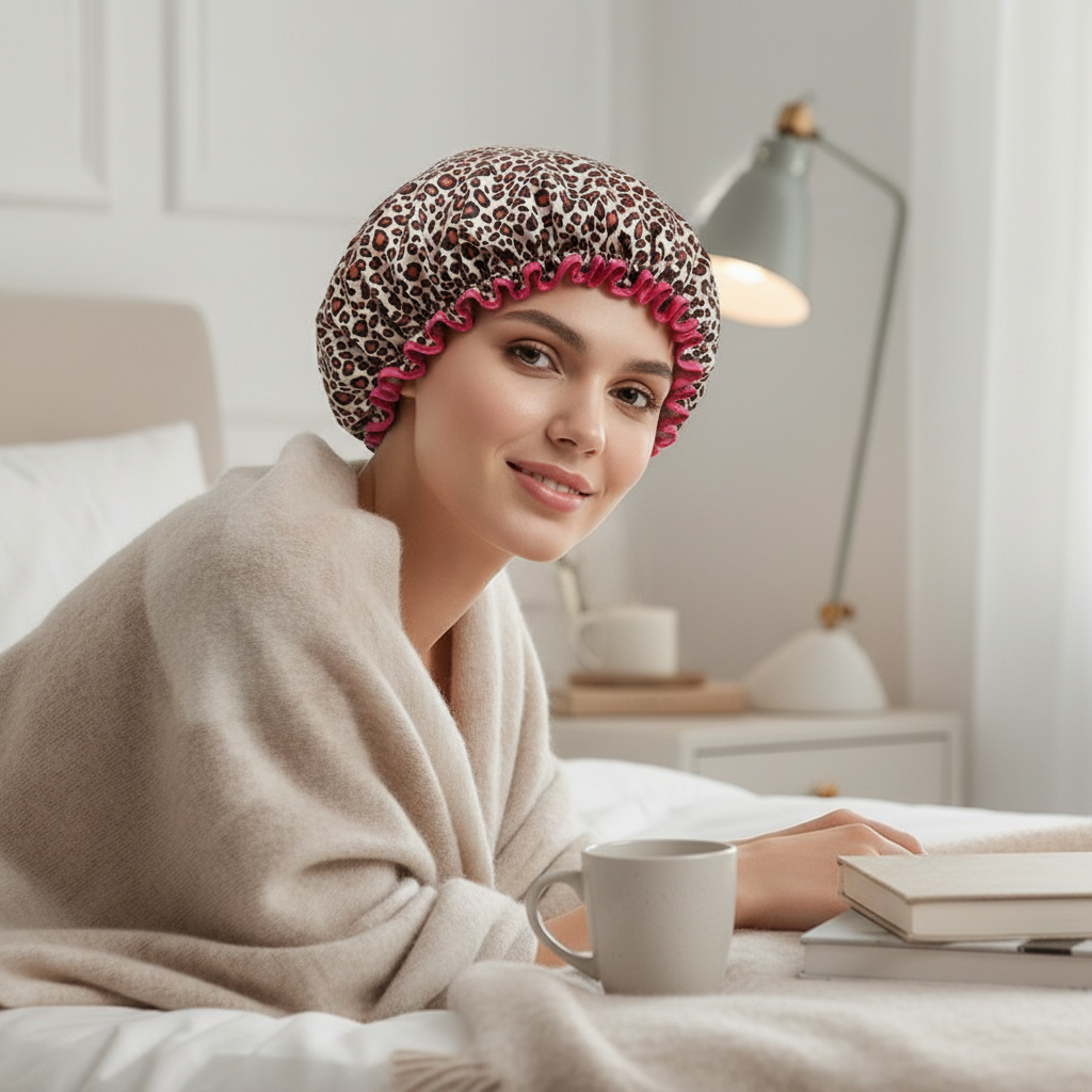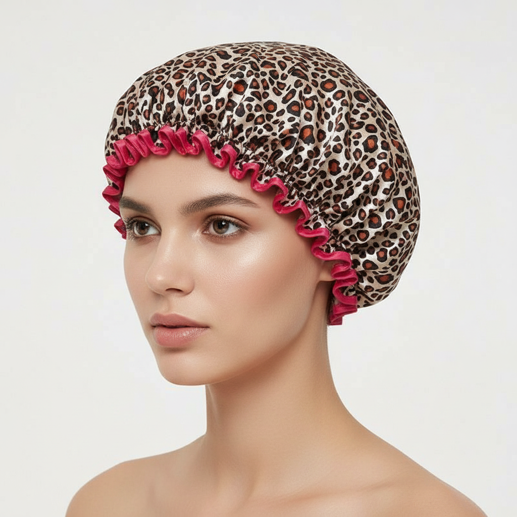 Bonnet En Satin Léopard Rose Pour Cheveux