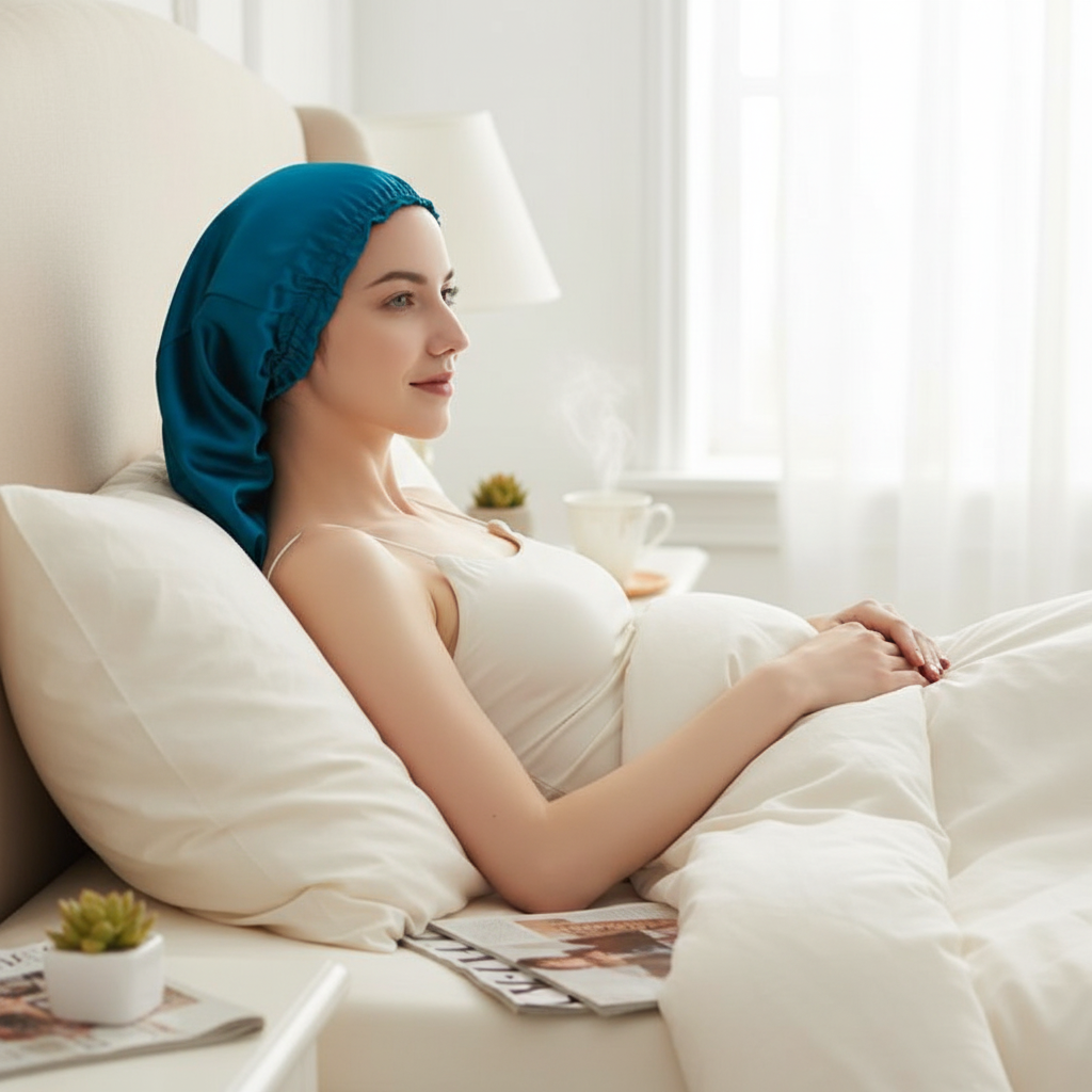 Le bonnet en satin sert à envelopper les cheveux pendant la nuit. Sa surface lisse contribue à limiter le frottement mécanique des cheveux. Il est conçu pour maintenir la chevelure en place durant le repos.