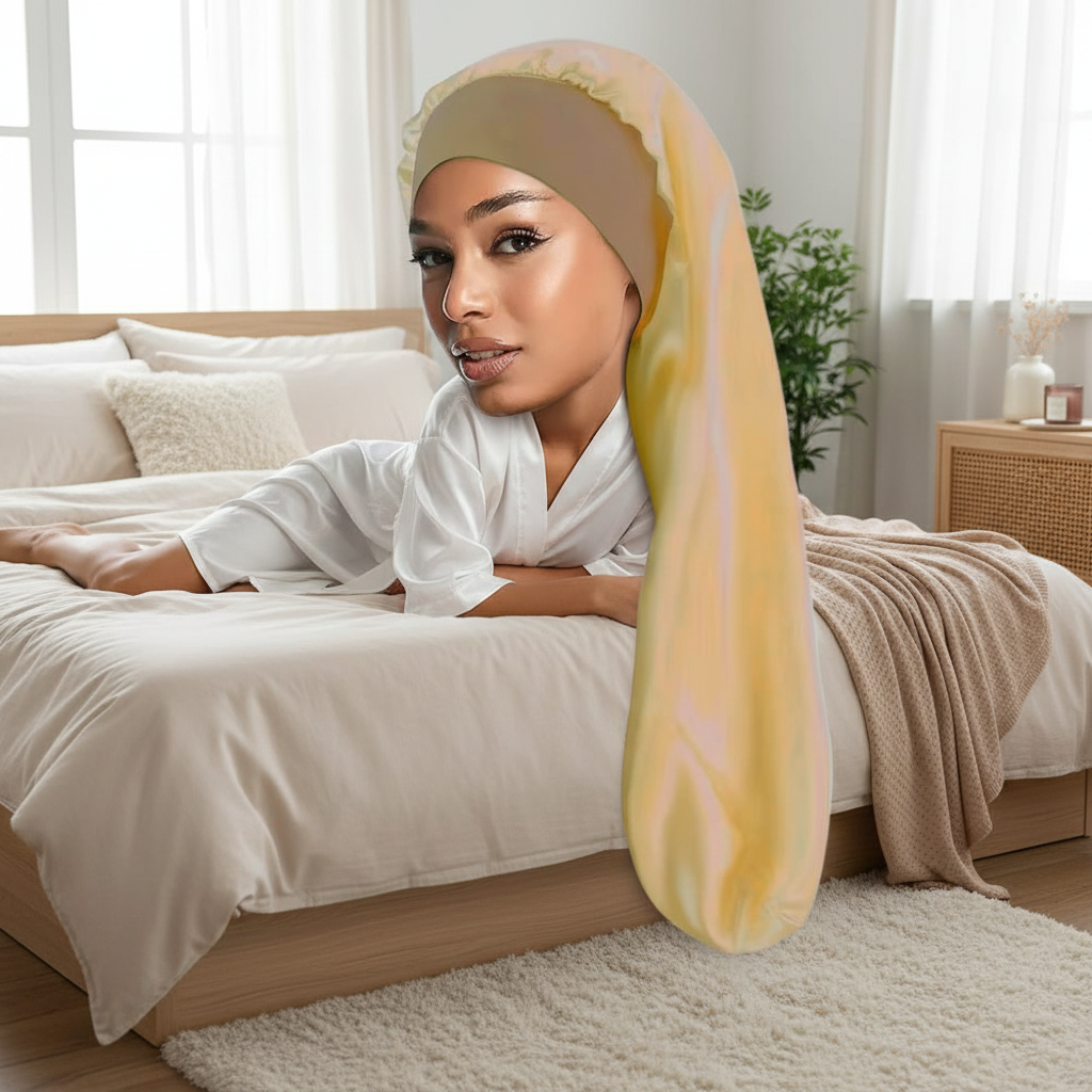Bonnet En Satin Long Doré Pour Cheveux