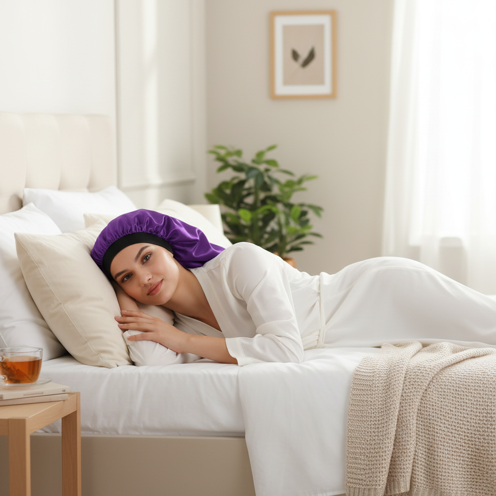 Offrez à vos cheveux une protection douce et soyeuse chaque nuit avec notre bonnet en satin lilas.
