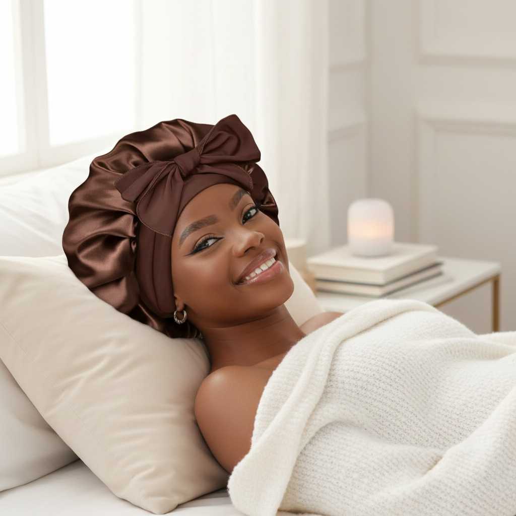 Bonnet En Satin Marron À Nœud Pour La Nuit