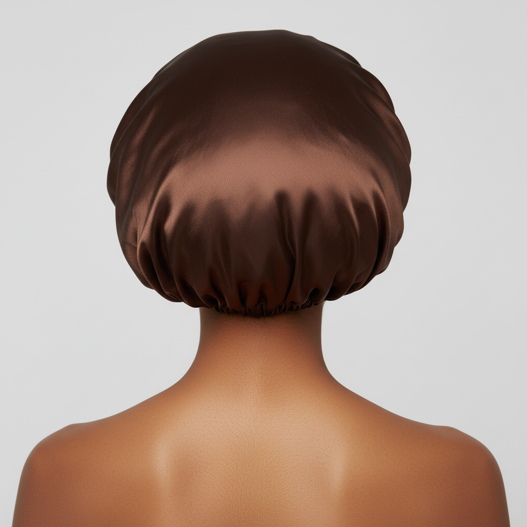 Bonnet En Satin Marron Élastique Pour Nuit – Protection Capillaire Nocturne