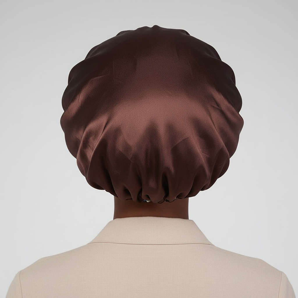 Protégez vos cheveux avec élégance grâce à notre bonnet en satin long marron.