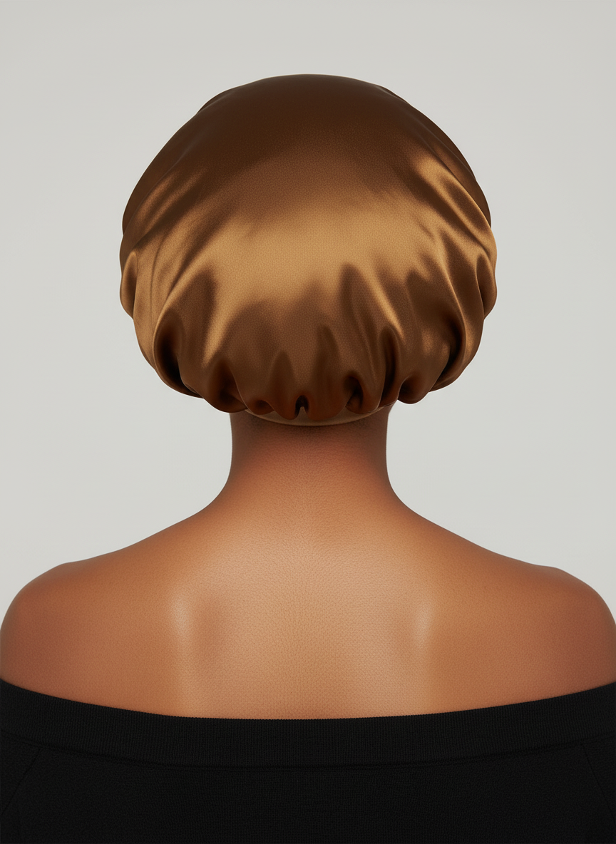 Protégez vos cheveux longs et préservez leur hydratation pendant votre sommeil avec notre bonnet en satin marron.