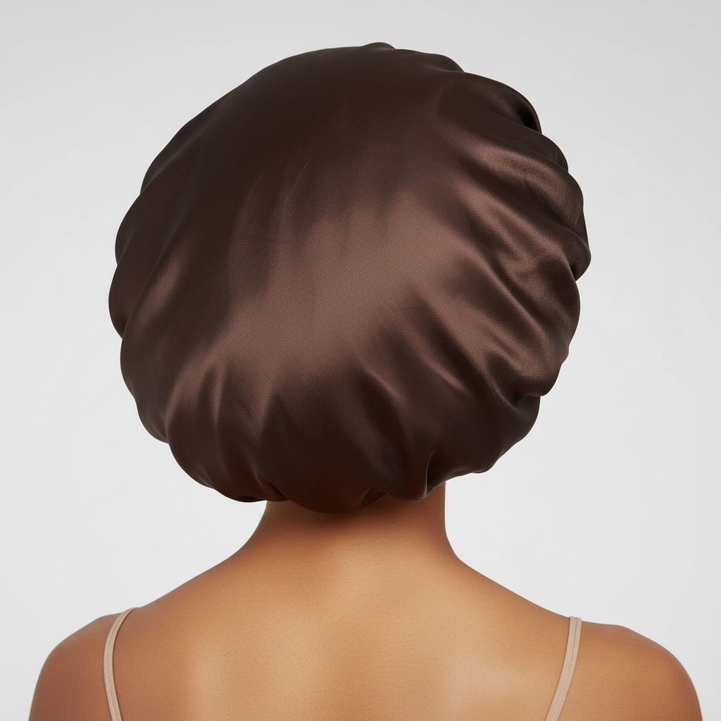 Le bonnet est utilisé pour contenir et protéger les cheveux durant le sommeil. Son revêtement en satin de polyester est conçu pour réduire la friction capillaire contre les surfaces de couchage. Cette action peut contribuer à maintenir l'hydratation des cheveux et à limiter les frottements physiques. Il est également employé pour préserver la forme des coiffures.