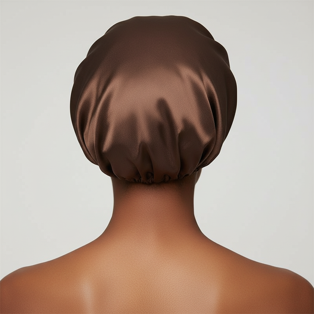 Protégez vos cheveux avec élégance chaque nuit grâce à notre bonnet en satin marron, conçu pour un soin optimal.