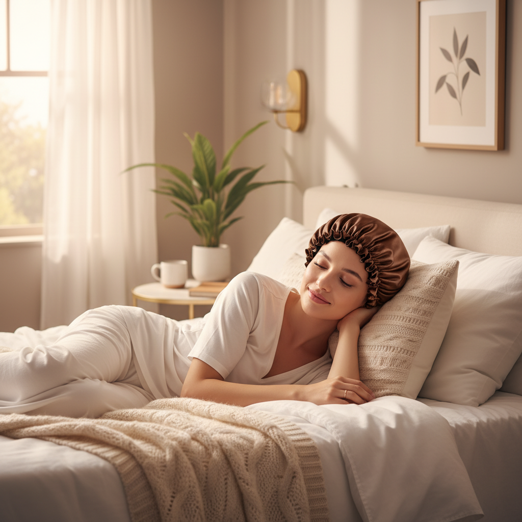 Protégez vos cheveux avec élégance et confort grâce à notre bonnet en satin marron.