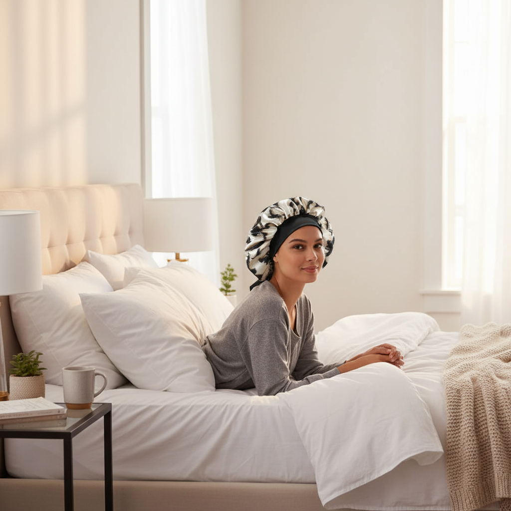 Cet accessoire est utilisé pour envelopper la chevelure pendant la nuit. Sa surface lisse contribue à limiter le frottement des cheveux contre les surfaces de couchage. Il maintient les coiffures et s'adapte à diverses longueurs et textures capillaires.