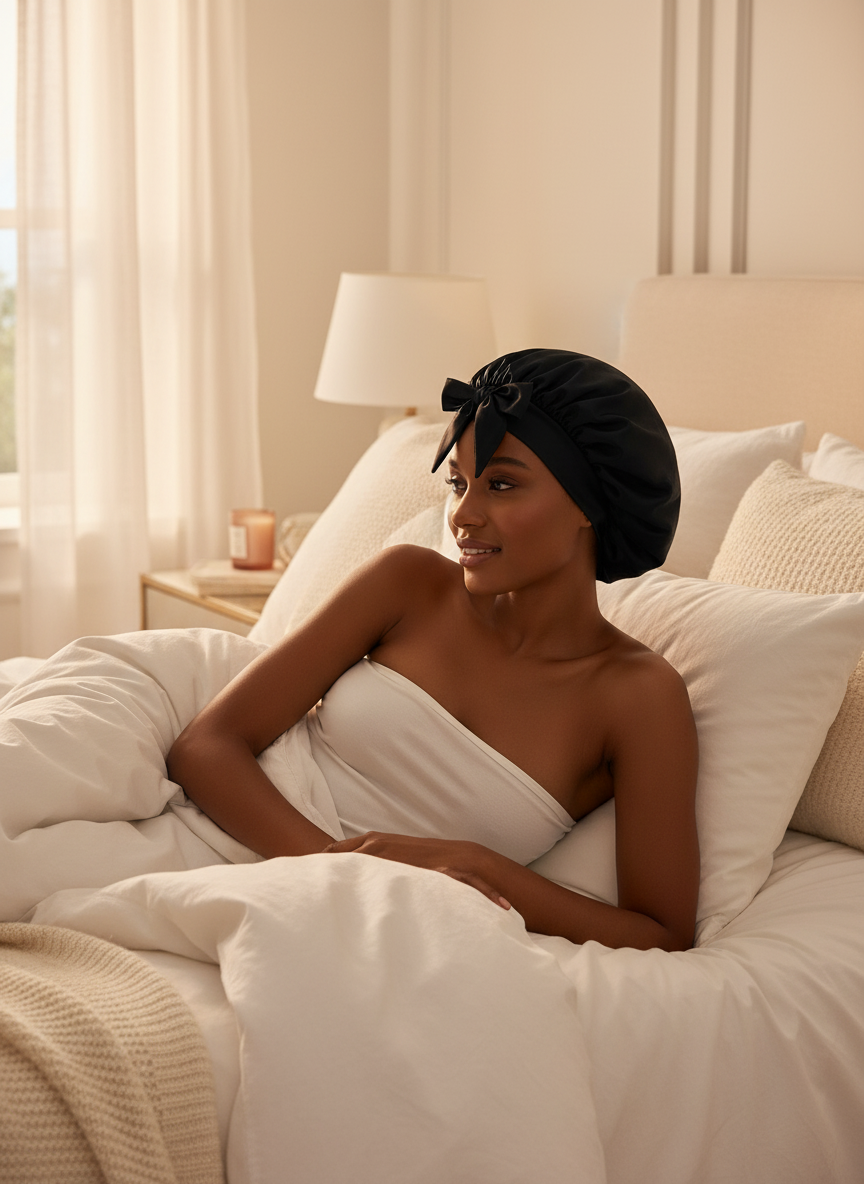Bonnet En Satin Noir À Nouer Femme