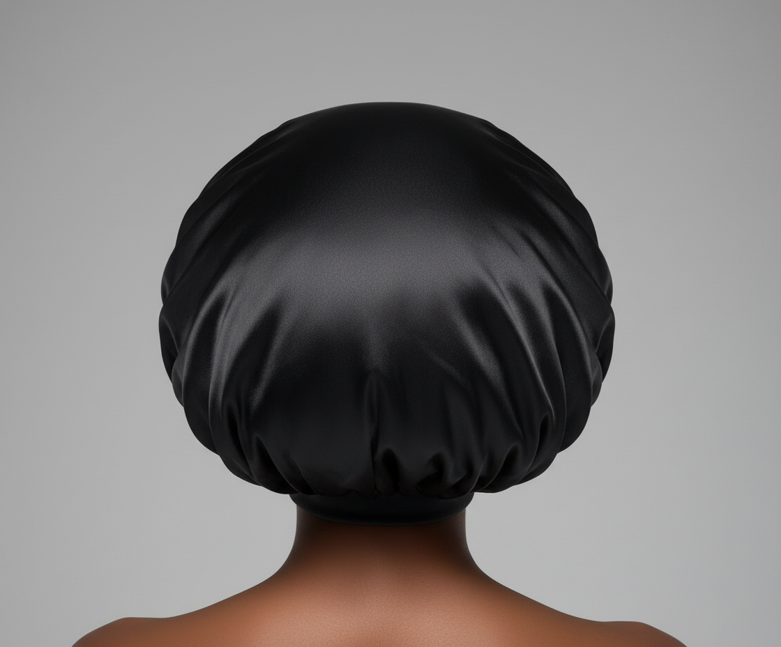 Ce bonnet est conçu pour être porté sur la chevelure la nuit ou lors de routines de soin. Il forme une couche protectrice entre les cheveux et les surfaces de couchage. Cette action aide à réduire les frottements, contribuant ainsi à limiter la casse, les frisottis et la perte d'hydratation.