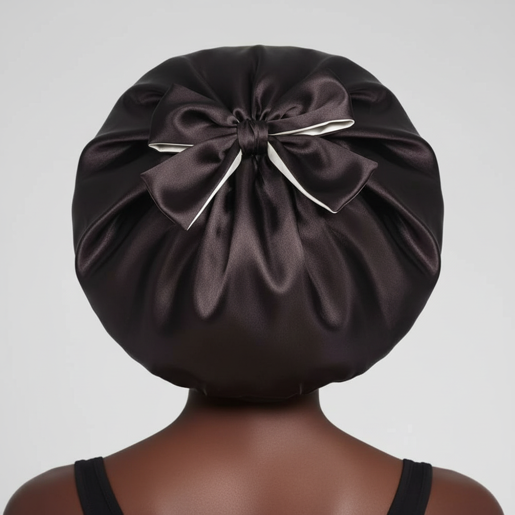 Bonnet En Satin Noir Avec Nœud Pour La Nuit