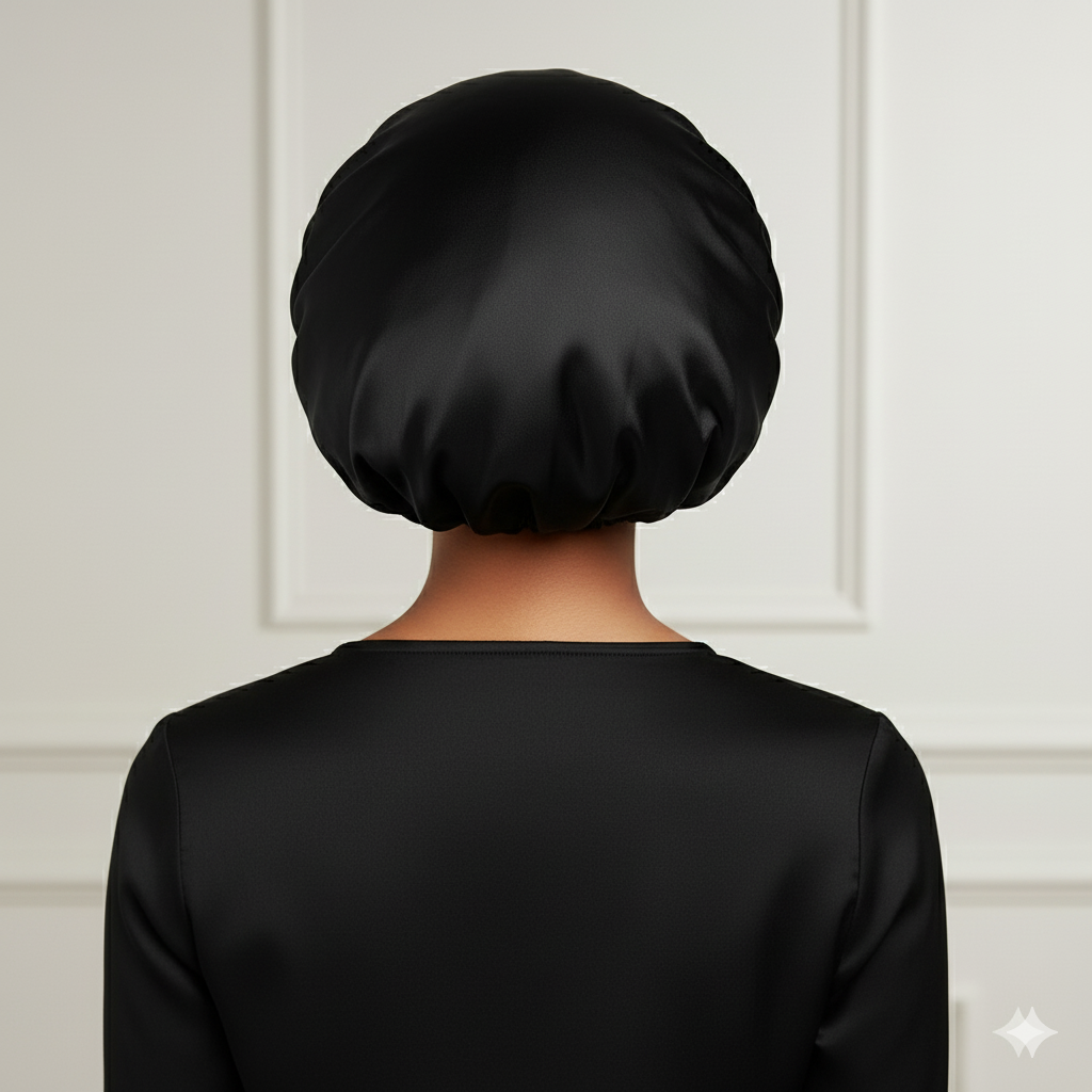 Protégez vos cheveux avec élégance grâce à notre bonnet en satin noir, conçu pour préserver leur douceur et leur brillance.