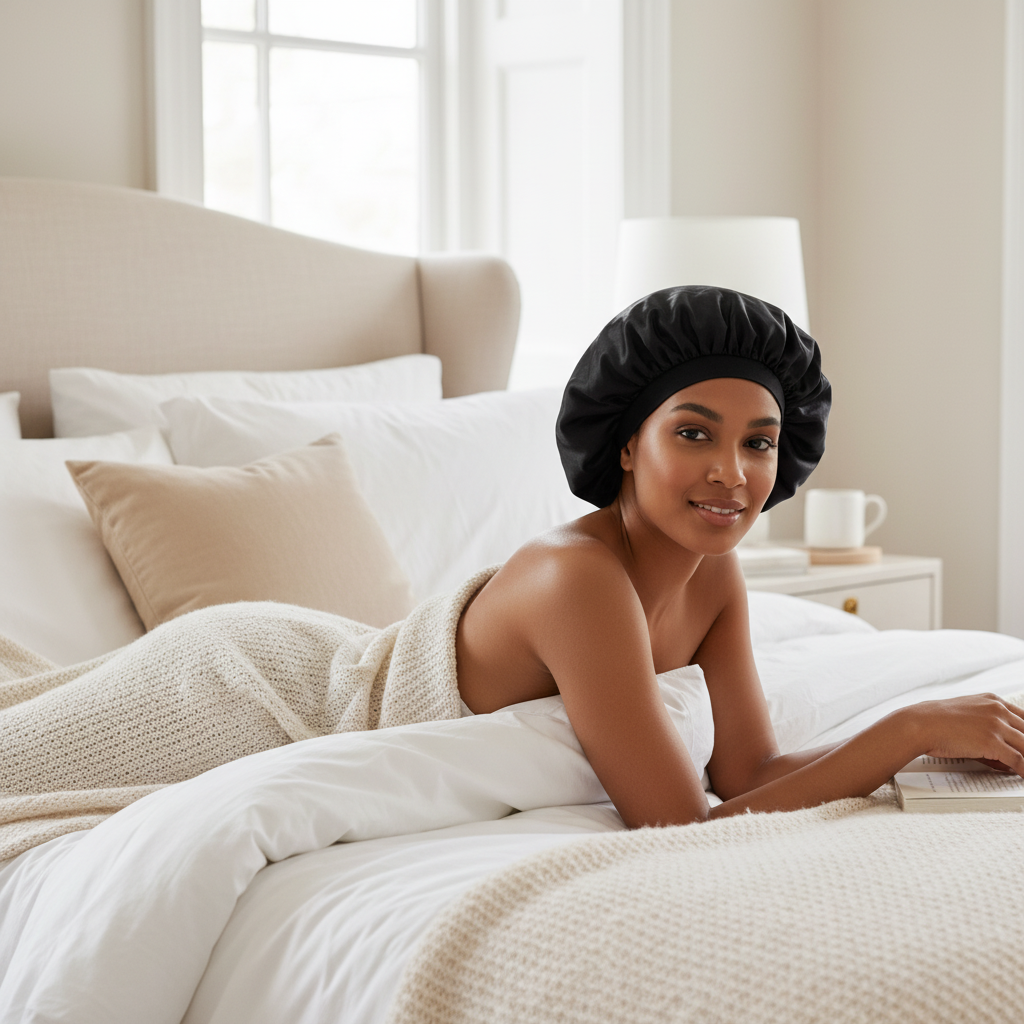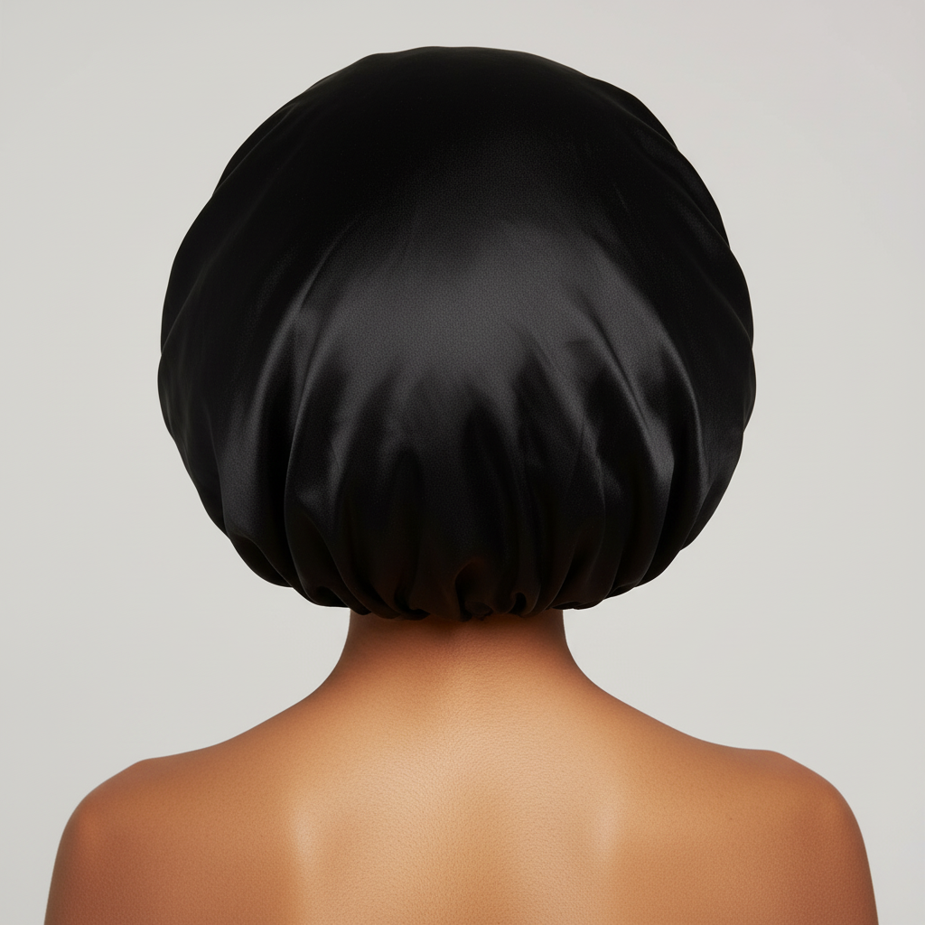 Protégez vos cheveux pendant votre sommeil avec ce bonnet en satin noir doux et élégant, conçu pour un confort optimal.