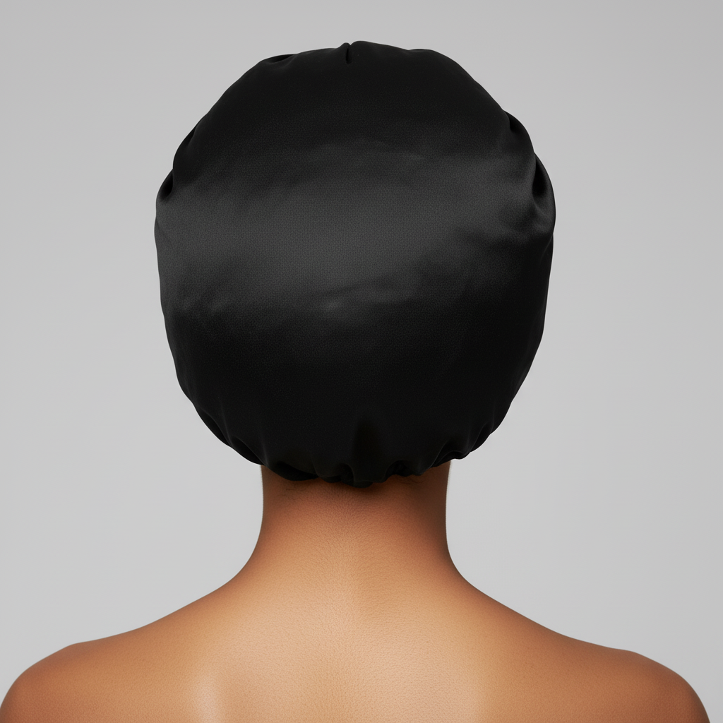 Protégez vos cheveux pendant votre sommeil avec notre bonnet en satin noir large, conçu pour un soin optimal.