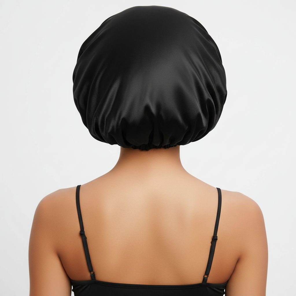 Le bonnet en satin est utilisé pour maintenir les cheveux regroupés et couverts durant la nuit. La surface lisse du tissu satiné réduit le frottement des cheveux contre les surfaces de couchage. La bande élastique assure le maintien du bonnet sur la tête.