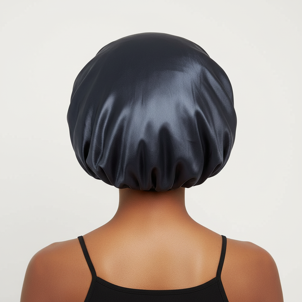 Bonnet En Satin Noir Oversize Pour Cheveux