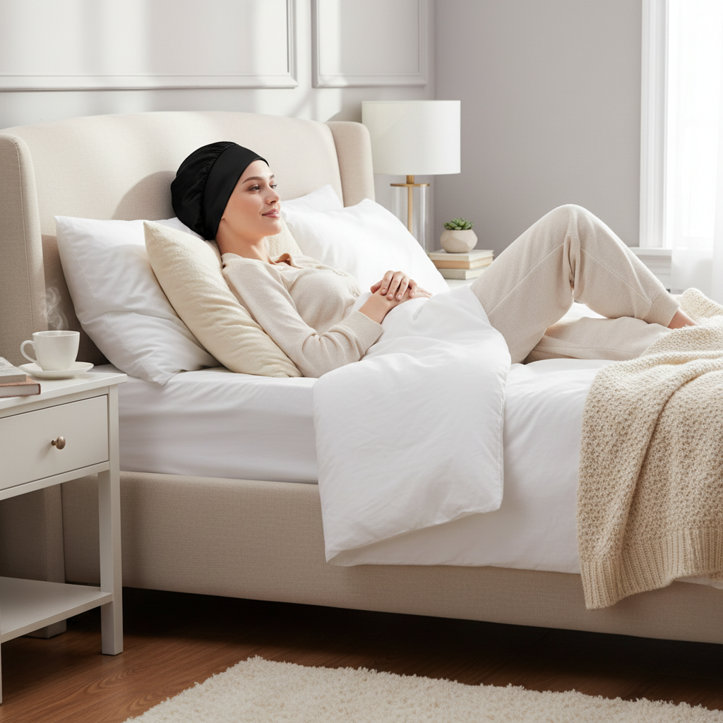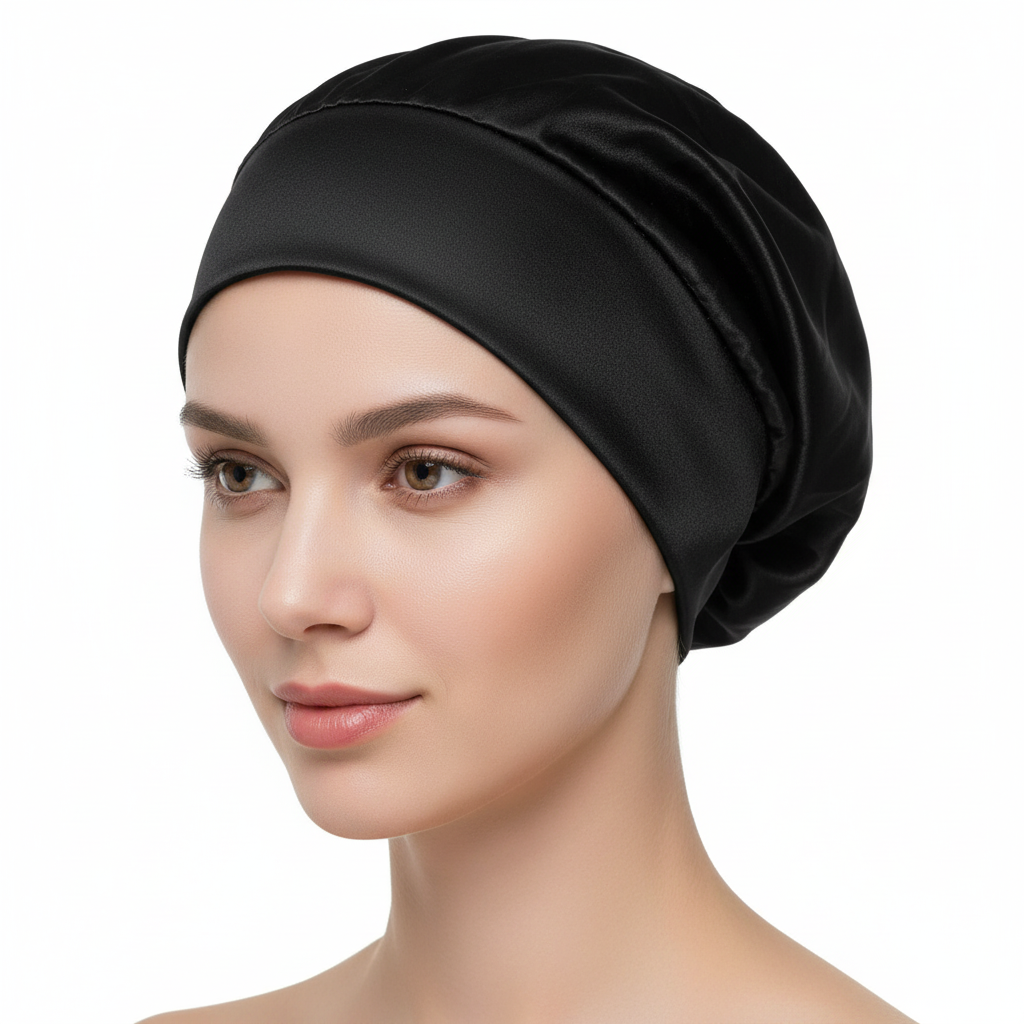 Bonnet En Satin Noir Pour Cheveux : Protection Nocturne Capillaire